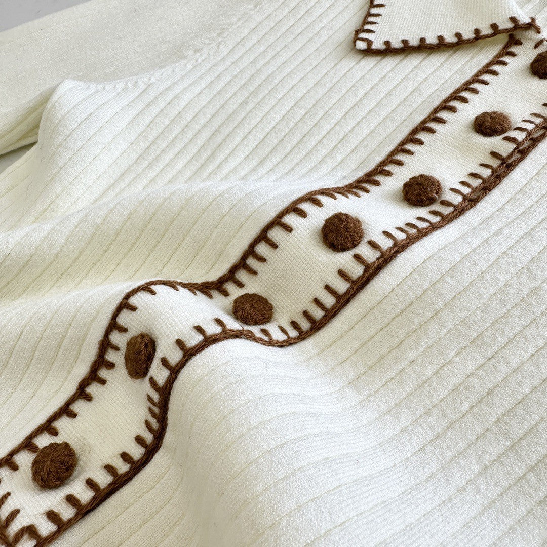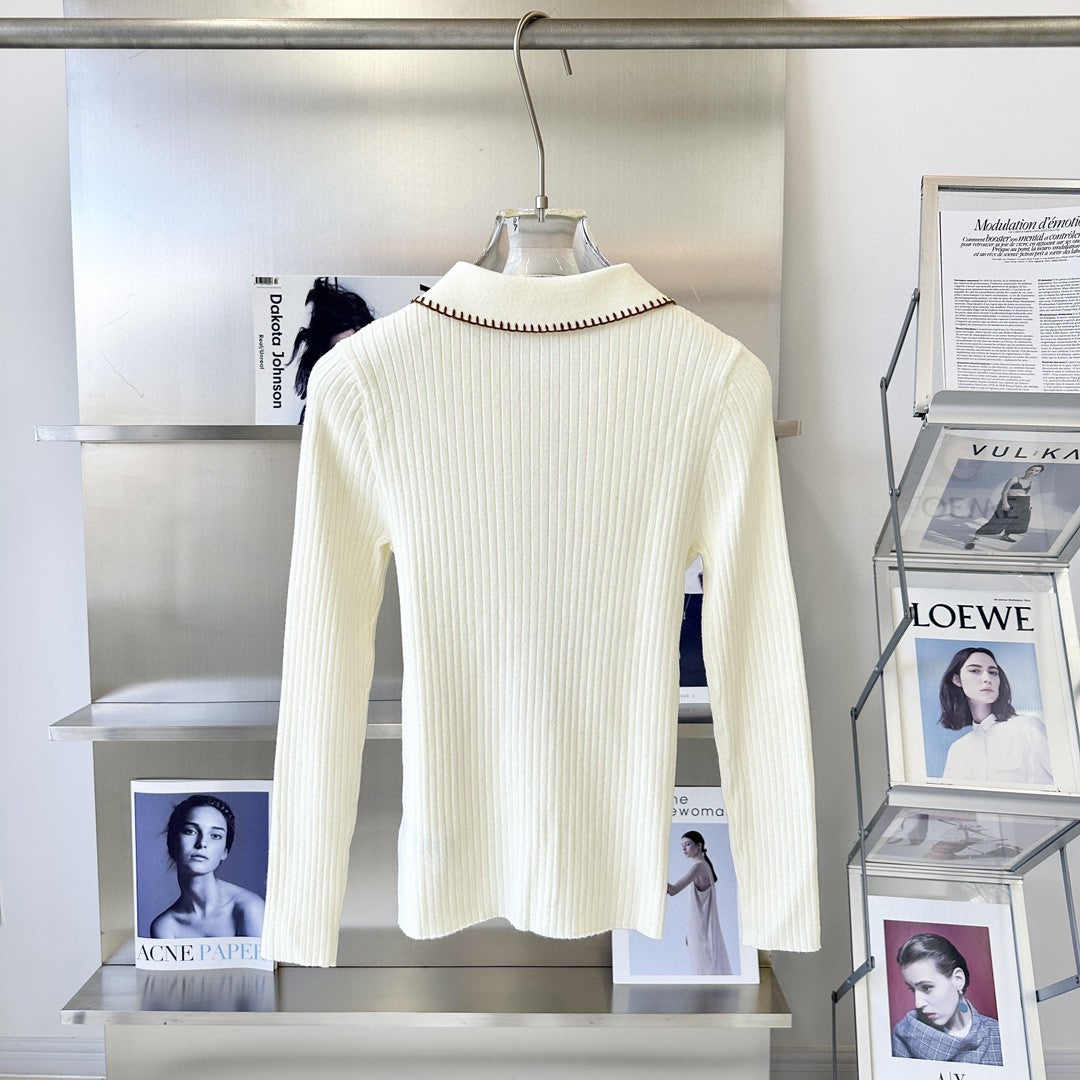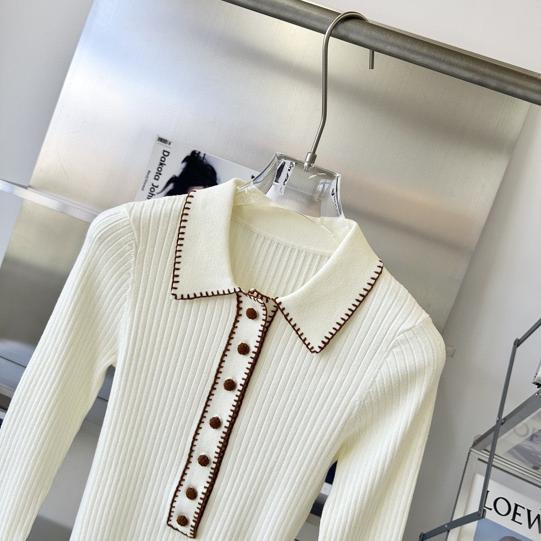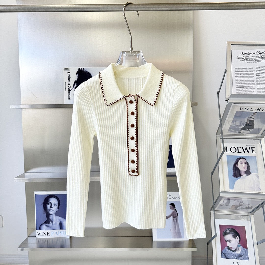 Pull Femme Retro – Manches Longues, Couleur Contrastée, Style Slim Fit