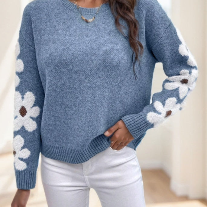 Sweat Femme Motif Floral – Pull Décontracté à Manches Longues, Col Rond, Style Chic