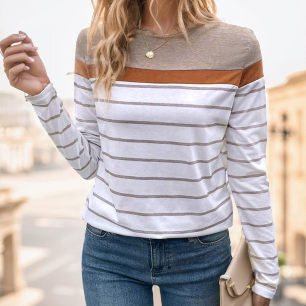 T-shirt Femme Rayé – Manches Longues, Col Rond, Style Décontracté