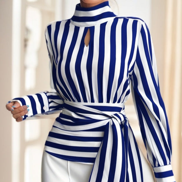 Ajoutez une touche élégante et classique à votre garde-robe avec ce top rayé à manches longues pour femmes, parfait pour un look quotidien polyvalent.